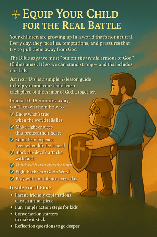 Armor Up! is a simple, 7-lesson guide to help you and your child learn each piece of the Armor of God. together.